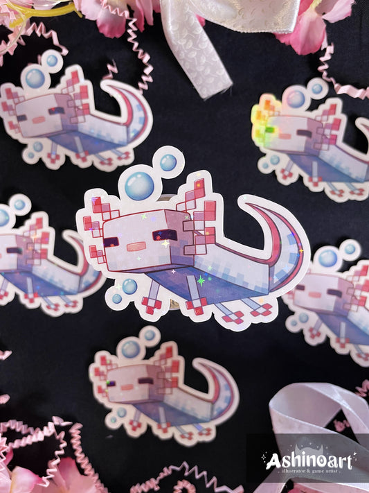 Sticker holographique d'un axolotl (Minecraft)